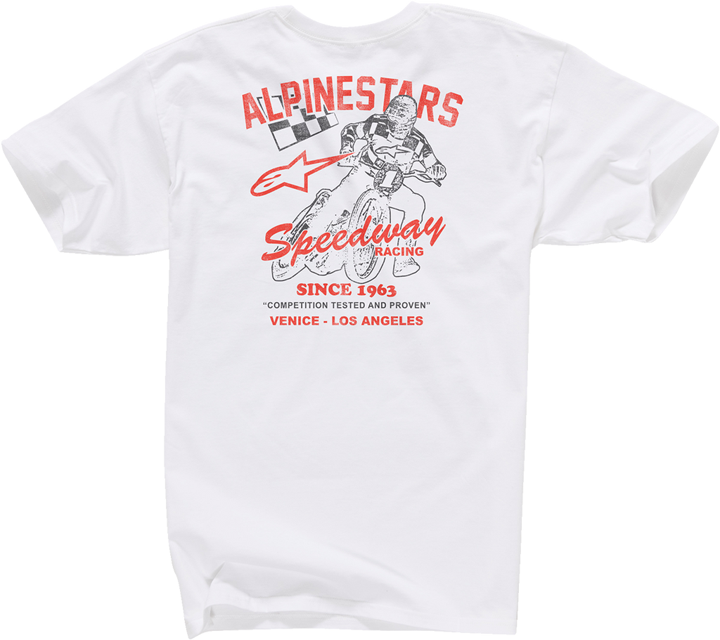 Speedway T-Shirt - White - Medium 100% Combed ring spun cotton, Classic printed t-shirt; Soft hand print, Speedway graphics on front and back of t-shirt, Internal neck print, external labeling