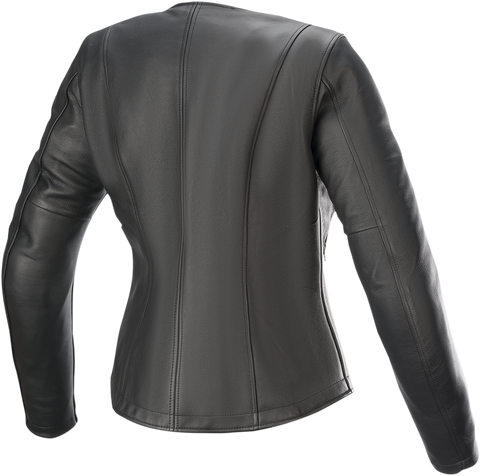 Anatomically profiled for a fully optimized female fit., Premium leather main chassis constructed from 1.3mm genuine bovine leather., Alpinestars Nucleon Flex Plus armor on shoulder and elbow (Alpinestars Nucleon back protector available as an accessory upgrade, sold separately)., Double breasted front closure with YKK metal zipper ensures a secure closure., YKK metal zipper on cuff with leather gusset for enhanced rider comfort., Two zippered hand pockets, inner waterproof document pocket and two inner liner pockets for safe and secure storage., Removable thermal hooded vest allows riders to adjust the jacket to suit the weather conditions