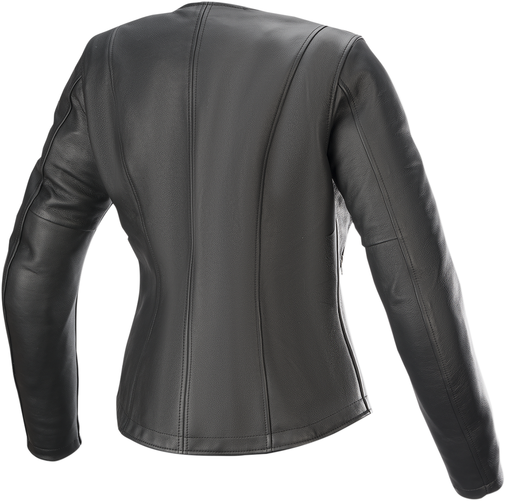 Anatomically profiled for a fully optimized female fit., Premium leather main chassis constructed from 1.3mm genuine bovine leather., Alpinestars Nucleon Flex Plus armor on shoulder and elbow (Alpinestars Nucleon back protector available as an accessory upgrade, sold separately)., Double breasted front closure with YKK metal zipper ensures a secure closure., YKK metal zipper on cuff with leather gusset for enhanced rider comfort., Two zippered hand pockets, inner waterproof document pocket and two inner liner pockets for safe and secure storage., Removable thermal hooded vest allows riders to adjust the jacket to suit the weather conditions
