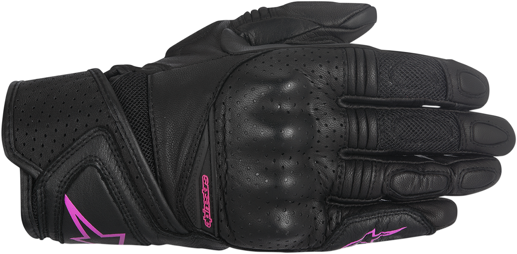 Optimized for a women's performance fit, Supple, durable full-grain leather construction, Vented fourchettes, 3D mesh inserts and strategically-located, perforated leather panels increase airflow and keep hands cool, Additional Ethylene-Vinyl Acetate (EVA) foam impact padding in fingers, backhand and palm, Stretch accordions on fingers and thumb for improved flexibility and comfort, Suede-reinforced outer-hand padding for impact absorption, Adjustable hook-and-loop closure on wrist, Leather-covered Thermoplastic Polyurethane (TPU) knuckle protector absorbs and dissipates impacts, Pre-curved fingers, Index finger compatible with smartphone touchscreens