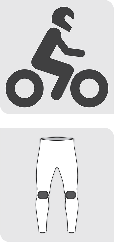 Stretch fabric shell construction, Stretch accordion panels on knee area to increase comfort in riding position, Reflective prints on inner side of lower edge, Full aramidic fiber lining, Replaceable foam hip pad inserts for comfort; sold separately