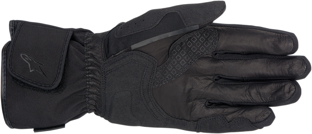 Leather palm with textile back of the hand, fourchettes and cuff, Gore-Tex® glove with X-Tratrim for improved dexterity and feel, Palm and sides are reinforced with synthetic suede, Polyurethane (PU) knuckles, bonded internally under the textile, EVA foam padding on fingers, thumb and wrist, Reinforced wrist cuff and landing zone, Alpinestars patented finger bridge prevents finger separation and reduces twisting in the event of a slide, Gusset panels on the index and middle fingers for flexibility, Hook-and-loop adjustable wrist and cuff, Reflective panels, Convenient TPR visor wipe located on the thumb