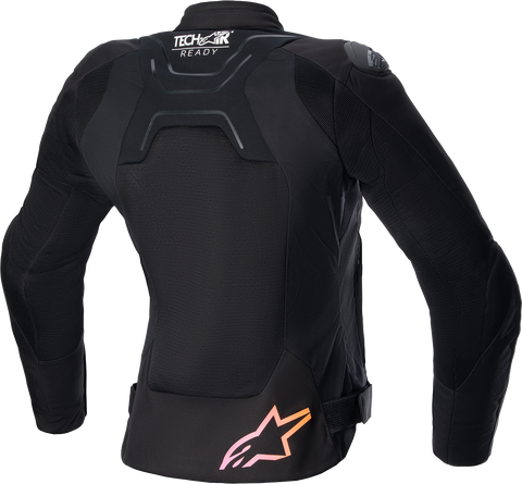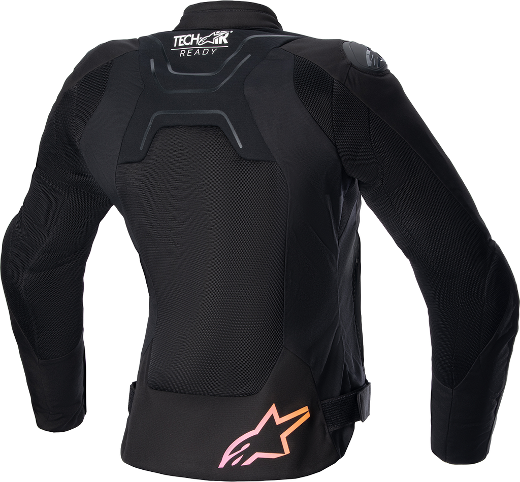 Tech-Air? Ready, Dedicated female fit, Strategic stretch inserts on side torso and upper back panel, Detachable windproof liner, Ergonomic design for optimal sport movement and flexibility, Mesh chassis with mechanical stretch combined with polyfabric 450D perforated in key areas including the chest panel, Waterproof compartment, Waist adjusters, New inner construction for Nucleon protection insert upgrades, ready to accommodate the new Alpinestars* long back protector insert, Nucleon Flex Plus armor, DFS lite shoulder external protectors