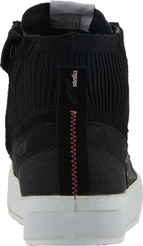 Anatomically engineered for an optimized women's fit, Alpinestars modern interpretation of a retro street sneaker, Combines styling of minimalistic skate pumps with a thick vulcanized sole to create a protective yet supremely comfortable riding shoe with a stripped back, edgy style that looks great in any urban riding environment, Women's specific last is engineered and optimized to follow natural shape and contours of women's feet for maximum rider comfort, on and off bike, Mid sole features an 8mm platform along its entire length to offer greater elevation for shorter riders, Main upper constructed from Nubuck, canvas and split suede for optimal blend of durability and comfort, Split suede toebox for enhanced durability, Classic lace closure at front with a lateral zip for a secure, precise fit, Ankle collar constructed with soft knitted mesh for enhanced rider comfort, Dual layer mid sole support for optimal comfort and support, Alpinestars vulcanized rubber urban sole with bandage for sole for optimal grip and comfort, on and off bike, Ortholite? insole delivers long-term cushioning and high level of breathability and comfort, Integrated dual density ankle disks for impact protection with external multi-layer padding for additional coverage, Alpinestars Transversal Protection Frame (TPF) protects the foot while delivering necessary support on footrest without compromising front foot flexion for superior walking comfort