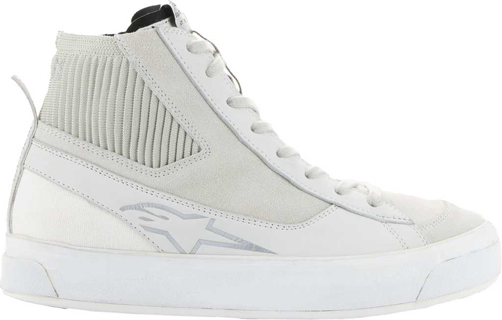 Anatomically engineered for an optimized women's fit, Alpinestars modern interpretation of a retro street sneaker, Combines styling of minimalistic skate pumps with a thick vulcanized sole to create a protective yet supremely comfortable riding shoe with a stripped back, edgy style that looks great in any urban riding environment, Women's specific last is engineered and optimized to follow natural shape and contours of women's feet for maximum rider comfort, on and off bike, Mid sole features an 8mm platform along its entire length to offer greater elevation for shorter riders, Main upper constructed from Nubuck, canvas and split suede for optimal blend of durability and comfort, Split suede toebox for enhanced durability, Classic lace closure at front with a lateral zip for a secure, precise fit, Ankle collar constructed with soft knitted mesh for enhanced rider comfort, Dual layer mid sole support for optimal comfort and support, Alpinestars vulcanized rubber urban sole with bandage for sole for optimal grip and comfort, on and off bike, Ortholite? insole delivers long-term cushioning and high level of breathability and comfort, Integrated dual density ankle disks for impact protection with external multi-layer padding for additional coverage, Alpinestars Transversal Protection Frame (TPF) protects the foot while delivering necessary support on footrest without compromising front foot flexion for superior walking comfort