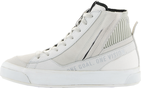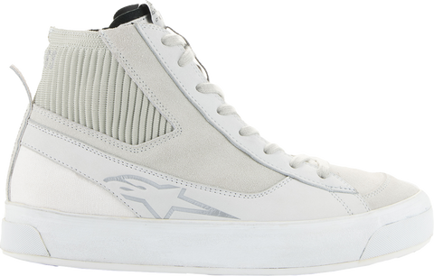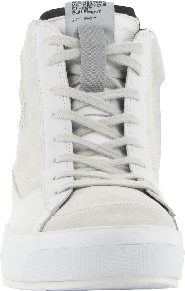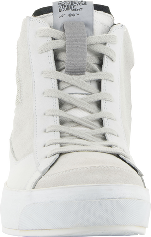Anatomically engineered for an optimized women's fit, Alpinestars modern interpretation of a retro street sneaker, Combines styling of minimalistic skate pumps with a thick vulcanized sole to create a protective yet supremely comfortable riding shoe with a stripped back, edgy style that looks great in any urban riding environment, Women's specific last is engineered and optimized to follow natural shape and contours of women's feet for maximum rider comfort, on and off bike, Mid sole features an 8mm platform along its entire length to offer greater elevation for shorter riders, Main upper constructed from Nubuck, canvas and split suede for optimal blend of durability and comfort, Split suede toebox for enhanced durability, Classic lace closure at front with a lateral zip for a secure, precise fit, Ankle collar constructed with soft knitted mesh for enhanced rider comfort, Dual layer mid sole support for optimal comfort and support, Alpinestars vulcanized rubber urban sole with bandage for sole for optimal grip and comfort, on and off bike, Ortholite? insole delivers long-term cushioning and high level of breathability and comfort, Integrated dual density ankle disks for impact protection with external multi-layer padding for additional coverage, Alpinestars Transversal Protection Frame (TPF) protects the foot while delivering necessary support on footrest without compromising front foot flexion for superior walking comfort