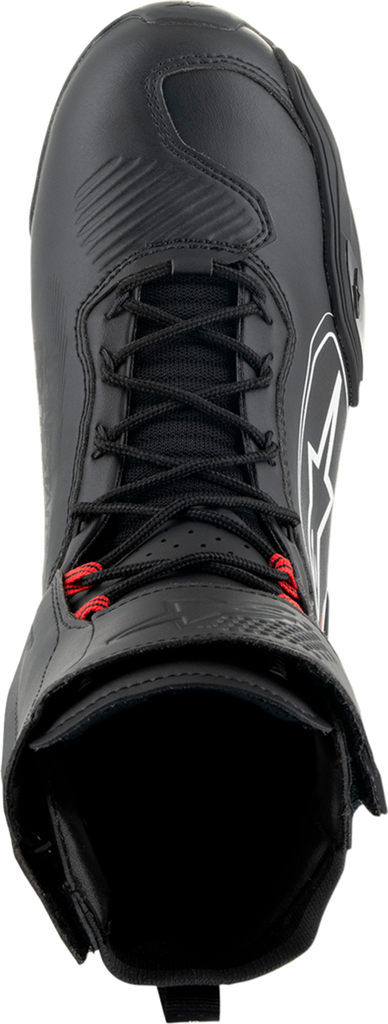 Shoe-like comfort with boot-like protection, Measuring around 25 cm tall, the Superfaster falls about 8 cm shorter than the SMX-6 performance sport boot, but around 6.5 cm taller than the Faster 3 performance shoe, Taller height of the Superfaster allows for better overall coverage, and more importantly, to incorporate more sophisticated protection, such as the integrated lower shin impact protector as well as the new, semi-rigid internal ankle brace system featuring malleolus impact protection and an achilles extension protector, Providing additional protection on the Superfaster's upper portion are double-injected ankle discs, lateral TPR panels on the outer ankle, a reinforced TPU heel counter, and a TPR layered toe box with lateral tow slider reinforcement, Sole itself features Alpinestars Transversal Protection Frame (TPF) midsole which consists of various layers of protection to prevent the foot from bending or twisting in the wrong directions, while simultaneously including soft PU foam, an EVA heel cushion, as well as a removable OrthoLite® insole, The Superfaster is guaranteed to provide all-day motorcycling protection with all-day walking and standing comfort, Rest of the Superfaster's chassis is constructed with advanced microfiber and Rideknit® panels with seamless thermo-welded parts and held securely in place on the rider's foot with a speed lace system and a long medial side zip foot opening, Overall design is also sculpted with an engineered flex point for freedom of movement with a pre-bent forward construction for riding comfort, and a low overall profile to allow the Superfaster to easily fit under any riding pant, Superfaster looks like an Alpinestars sport show in your denim, feels like your favorite sneaker when you walk because of the new sole, and protects like a real boot with the height and full set protection, No compromises on looks, comfort, or protection