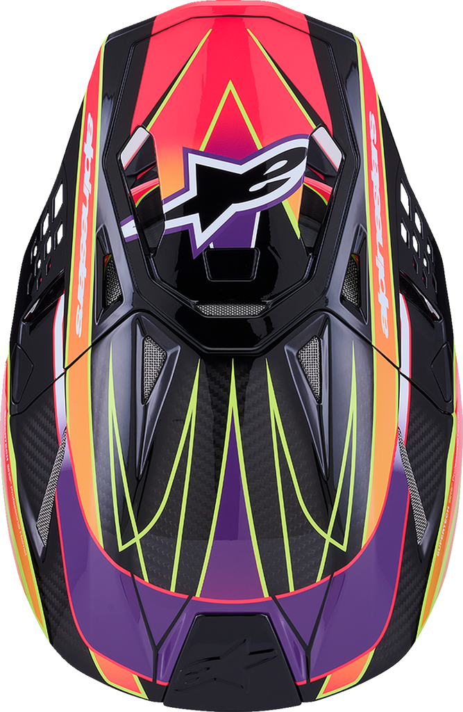 The Alpinestars Supertech M10 helmet combines advanced safety features with an aerodynamic and streamlined design to ensure optimal protection and comfort for riders. Its smooth surface curvature minimizes friction during impact, promoting energy deflection and transfer to safeguard the rider's head from direct force. The helmet's shell sizing system ensures each size offers an anatomical fit, reducing weight and enhancing impact performance for a secure and comfortable ride. Equipped with MIPS? Multi-directional Impact Protection System, the helmet mitigates rotational forces during oblique impacts, providing an extra layer of safety. The chin bar's design features a relief section to clear the collarbone, reducing the risk of collarbone injuries while maintaining structural integrity. The soft EPS liner extends beyond the shell, covered by a flexible rubber compound to further absorb impact energy and protect the collarbone region. The A-Head Fitment System allows easy adjustment of the helmet*s angle and height, ensuring a customized fit for varying head shapes. With 28 active ventilation ports*18 intake and 10 exhaust*the helmet offers exceptional airflow, keeping the rider cool during intense activity. Eject technology facilitates quick helmet removal in emergency situations, while the removable side pads made from semi-soft polymer help distribute impact forces evenly. The Emergency Release System (ERS) ensures safe removal of the helmet without causing additional injury. Overall, the Alpinestars Supertech M10 helmet provides a comprehensive combination of safety, comfort, and aerodynamic performance for professional and enthusiast riders alike.