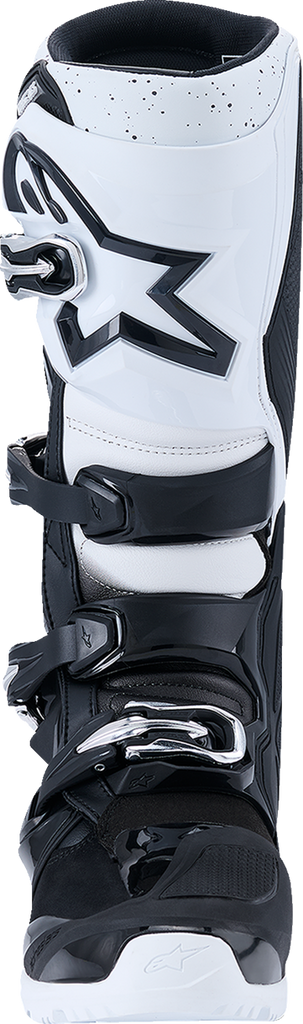 The Alpinestars Tech 7 Enduro Boots are engineered for demanding off-road riders seeking superior protection, comfort, and durability. Crafted with a lightweight microfiber upper, these boots offer excellent flexibility and abrasion resistance, ensuring they withstand tough terrains while providing a comfortable fit. The innovative TPU shin plate construction features a reinforced hook-and-loop closure that allows for a customizable fit, enhancing stability and support during rigorous rides. A strategically designed TPU blade system in the shin zone prevents frontal hyper-extension and offers enhanced flex control, giving riders confidence in every move.