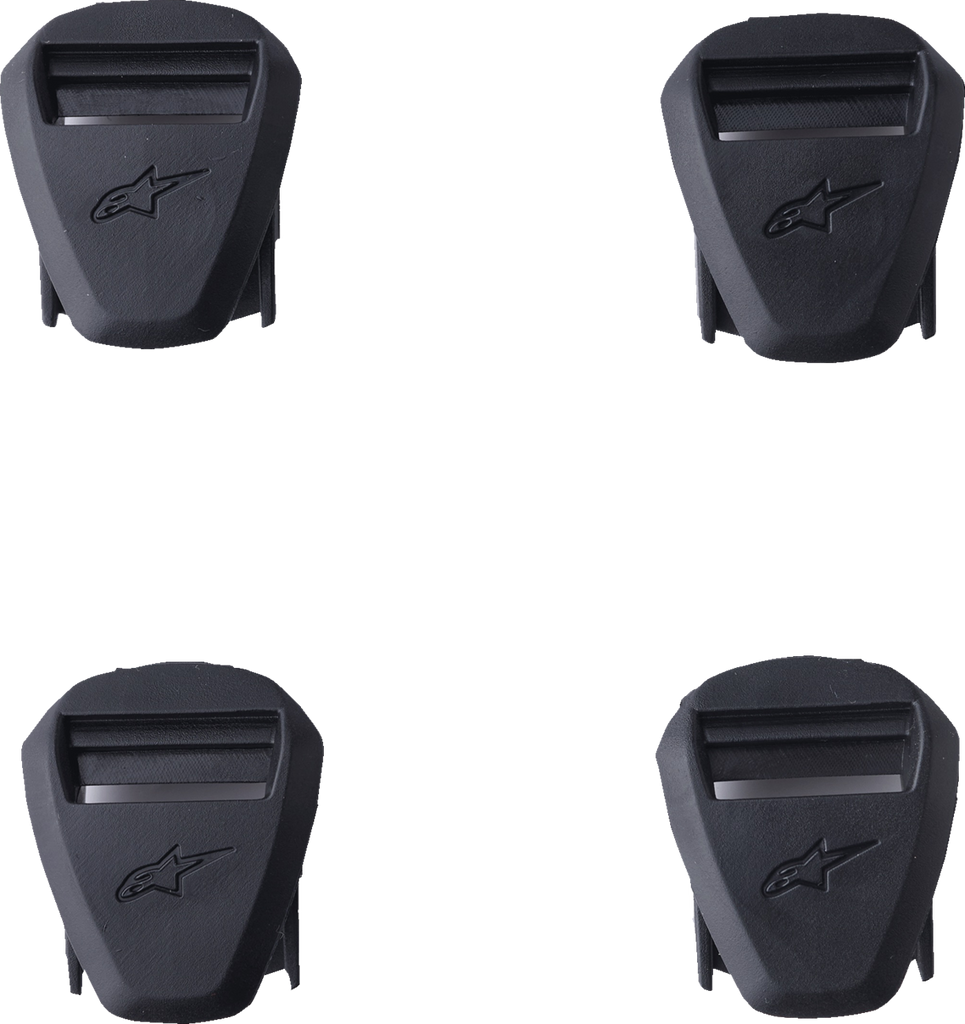 Ensure your Alpinestars Tech 7 motocross boots maintain a secure fit with the original replacement strap lock set. Designed specifically for the Tech series, this set provides a reliable solution to replace worn or damaged straps, restoring the boots' performance and comfort. Crafted with precision, these strap locks are easy to install and built to withstand rigorous riding conditions, offering durability and peace of mind during your rides. Ideal for riders seeking to maintain their gear*s integrity, this replacement set ensures your boots stay securely fastened throughout your adventure. The black finish complements the aesthetic of your existing boots, providing a seamless look while offering functional reliability. Restoring your boots with genuine parts like this strap lock set helps prolong their lifespan and maintain optimal safety standards on the trail or track.