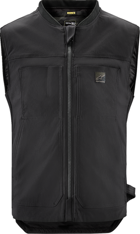 Constructed from durable stretch nylon canvas, the vest features a ribbed bomber collar and elastic side panels for enhanced comfort and flexibility. The central zipper is complemented by internal magnet snap buttons that secure the chest bladder in place while riding and can be folded back when not in use for a streamlined profile. Multiple pockets*including two zippered hand pockets, two chest pockets with a sunglasses channel, and an inner concealed pocket*offer ample storage options. A waist loop allows attachment of gloves or other accessories, increasing practicality for riders on the go.