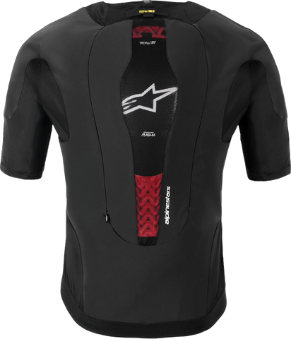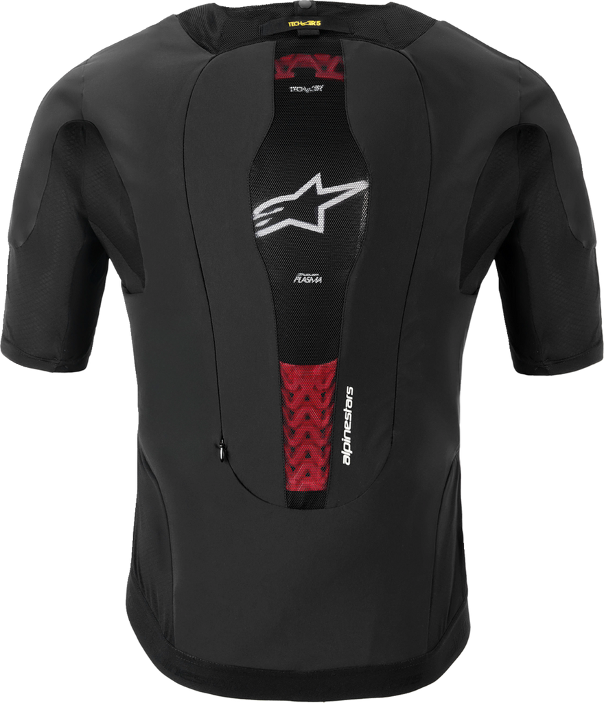 The Alpinestars Tech-Air? 5 Plasma System in black, size XS, offers comprehensive upper body protection designed for motorcycle enthusiasts seeking advanced safety without sacrificing comfort. Crafted with an ultra-slim, lightweight profile, this system discreetly fits under a jacket, providing an 'invisible under the jacket' feel that enhances rider mobility and confidence. Its minimal material construction ensures a seamless integration with riding gear, preventing bulk while delivering full coverage for the chest, ribs, back, and shoulders. Equipped with a Plasma back protector made from eco-friendly, impact-absorbing Nucleon Plasma, this system optimizes impact dispersion, breathability, and flexibility for a superior riding experience.