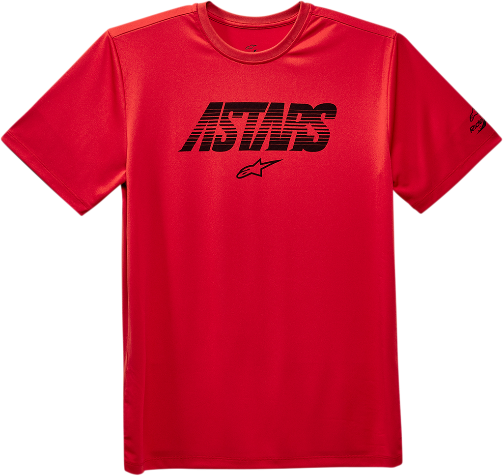 Classic tee shirt in performance poly-wicking fabric, Front Angle combo logo graphic, Soft hand print, Internal neck print, external labeling