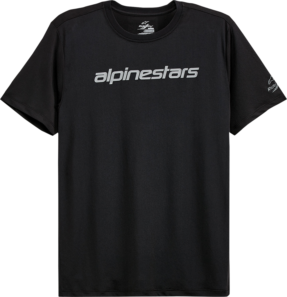 Tech Linear Performance T-Shirt - Black - Large Screen-printed graphic on front and left sleeve, Internal print label
