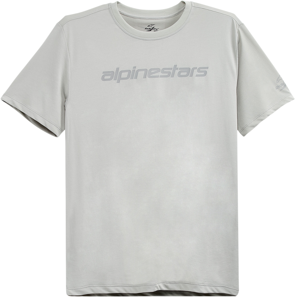 Tech Linear Performance T-Shirt - Silver - Large Screen-printed graphic on front and left sleeve, Internal print label