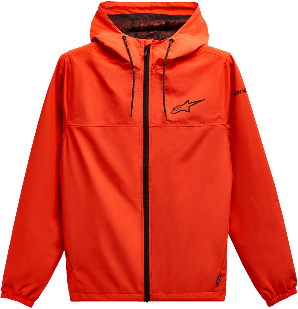 Light weight mesh lined wind breaker jacket , On-seam hand pockets, bungie adjusters at hem, elastic cuffs , Internal main label and external label branding and logos at chest and sleeve, Fixed hood with drawcords, reverse coil zipper at front