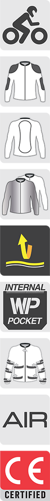 Multi-fabric shell construction with mesh panels on chest and back and sleeves for improved cooling performance., Waist adjustment for an improved riding fit., Volume adjusters on sleeve to reduce material bunching., Two zippered hand pockets for real-world practicality., Waist connection zipper allows attachment to Alpinestars riding pants., Low profile collar construction with microfiber edging plus 3D textured, Fabric on the inner collar lining for high levels of rider comfort., Pre-curved sleeve construction reduces riding fatigue., Reflective details to make the rider more visible to other road users., Waterproof inner pockets for peace-of-mind storage., Bio Armor shoulder and elbow protectors., Nucleon chest and Level 2 Nucleon back inserts, available as an accessory upgrade, sold separately., Optimal levels of protection against impacts., Chest pad and back compartments are designed to accommodate the Alpinestars Level 1 protectors.