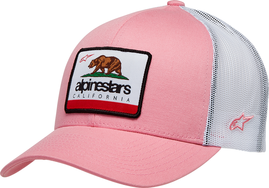 Women's Cali 2.0 Hat - Pink/White - One Size Twill front and poly mesh back fabric hat, Content: 60% Cotton / 40% Polyester, Woven Merrow patch, Internal and back labeling