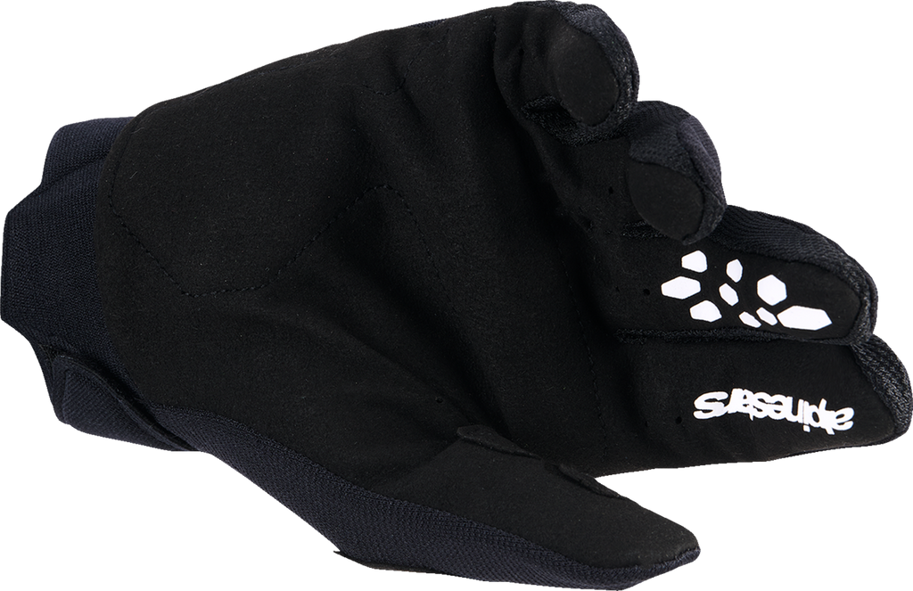 A neoprene cuff with an integrated wrist strap ensures a secure, personalized fit while maximizing comfort and flexibility. The silicone print on the first and second fingers enhances grip on bike controls, providing riders with confidence and control during aggressive riding. Additionally, pull tabs with silicone grips facilitate easy on and off, making these gloves both functional and rider-friendly. Whether tackling motocross tracks or trail rides, the Alpinestars Youth Full Bore V2 Gloves are engineered to meet the demands of young riders seeking reliable protection and superior performance.