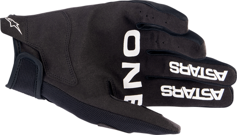 Lightweight glove incorporates a single-piece spandex upper and synthetic suede palm reinforcements for comfort and improved feeling on a bike's controls, Rolling backhand and index finger for additional protection in a key area, Localized palm perforations palm for enhanced breathability, Strap closure for security, Synthetic suede palm for durability, Thumb patch reinforcement for durability, Puller for easy entry into glove, Stretch fourchettes for increased flexibility, Sublimated graphic on backhand