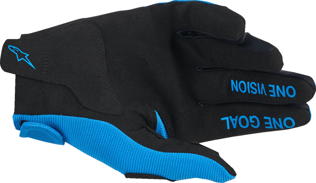 The design includes rolling palm and fingertip reinforcements on two external fingers, significantly increasing durability and resistance to wear over time. Perforated thumb patch reinforcement enhances airflow, reducing heat buildup and keeping hands cooler during extended rides. The stretch fourchettes between all fingers improve flexibility, allowing for natural hand movements and reduced fatigue. Sublimated graphics on the backhand add a stylish touch, making these gloves not only functional but visually appealing. Overall, the Alpinestars Youth Radar Gloves are ideal for young riders seeking a combination of comfort, durability, and touchscreen compatibility in their riding gear.