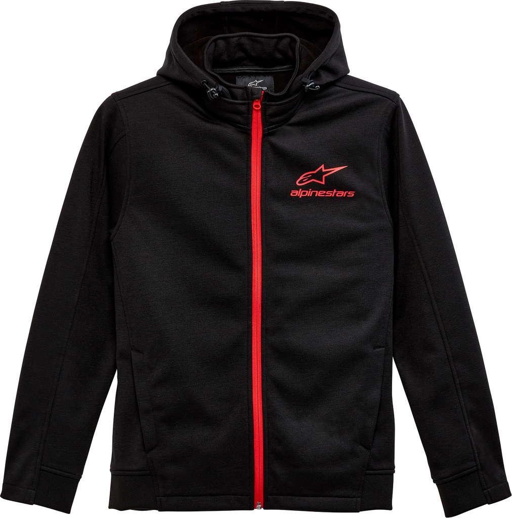 Bonded micro fleece jacket with removable hood, Reverse coil zipper front, bungie adjusters at hood, 100% polyester / jersey bonded polar fleece, 280g/m2, On seam hand pockets, half rib cuffs and rib hem, Bonded jacket with removable hood, Internal main label and external label branding, HD combo logo at chest