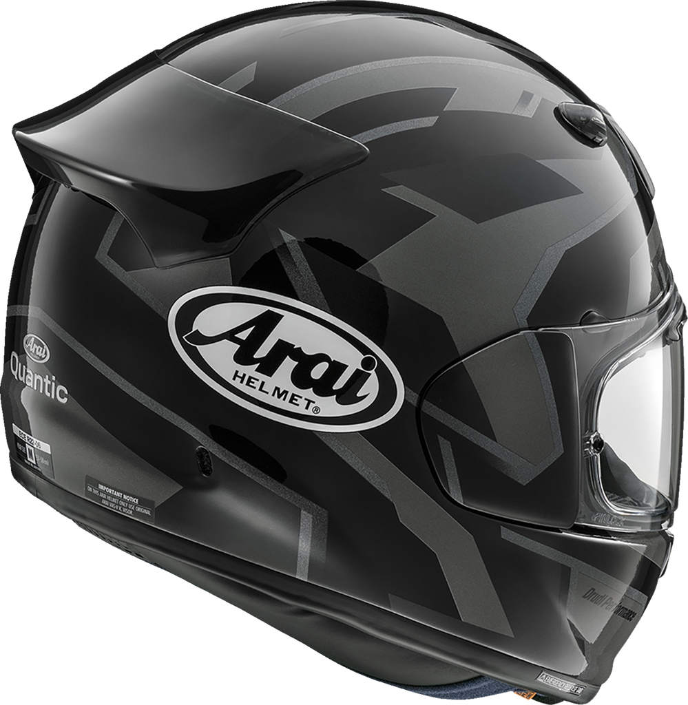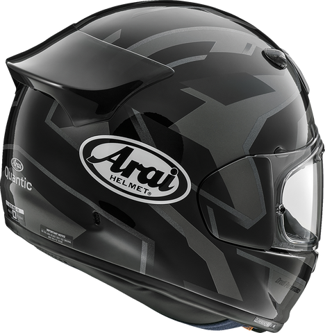 The ARAI HELMETS Signet-X Robotik Black Helmet offers a tailored fit for riders with a narrow head and a pronounced forehead, thanks to its long oval shape. Its design features an enhanced EPS liner that increases front-to-back space while reducing side-to-side width, providing improved comfort and stability during rides. The helmet's shell incorporates Peripherally Belted - Super Complex Laminate Construction (PB-SCLC), combining multiple materials and techniques to deliver durability, performance, and affordability. This construction ensures a lightweight yet robust shell capable of better impact absorption, especially around the temple area, thanks to the lowered pivot point of the Variable Axis System (VAS) shield mechanism.