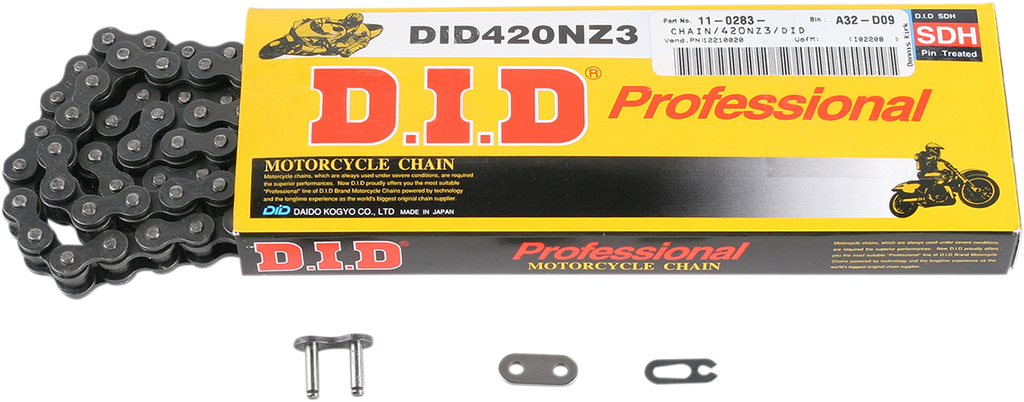 Additionally, the chain features increased antioxidation performance, protecting it against corrosion and environmental damage. This makes it suitable for extended use in challenging conditions. Made by DID, a trusted brand in motorcycle chains, the 420 NZ3 is engineered for riders who demand performance, reliability, and long chain life from their equipment. Whether upgrading your current setup or building a new racing machine, this chain delivers the strength and durability needed for competitive riding and everyday use alike.