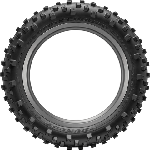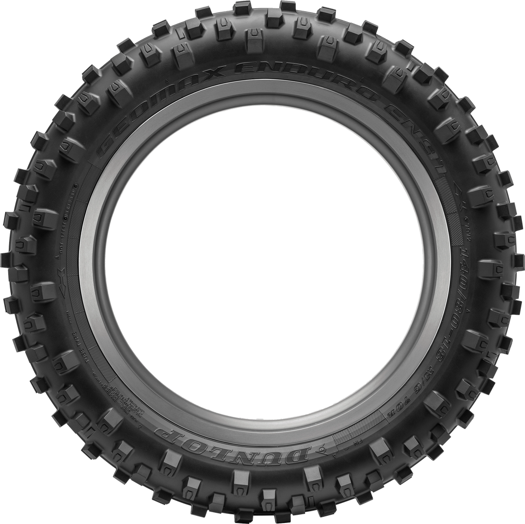 The Dunlop Geomax Enduro EN91 Rear Tire is designed specifically for off-road enthusiasts seeking superior traction and durability. Featuring a new pattern that enhances sand and mud grip, this tire offers increased maneuverability across challenging terrains. The innovative design ensures you maintain control whether navigating rocky trails or loose surfaces, making it an ideal choice for enduro riders and adventure motorcyclists alike. The tire's construction incorporates a durable compound that extends wear life while maintaining strong grip performance, ensuring reliable handling on both rugged trails and paved roads. DOT approval guarantees its suitability for highway use, providing versatility for riders who frequently transition between off-road and on-road environments. The rear tire includes 'Tilt Crown Blocks' (TCB) to improve traction on rocky terrain, while mountain-shaped blocks on the front provide enhanced stability on rocky and stony surfaces. These features work together to deliver confident handling and optimal traction in a variety of conditions. Whether you're tackling technical mountain trails or cruising on highway stretches, the Dunlop Geomax EN91 combines innovative design and rugged performance to meet the demands of serious riders.