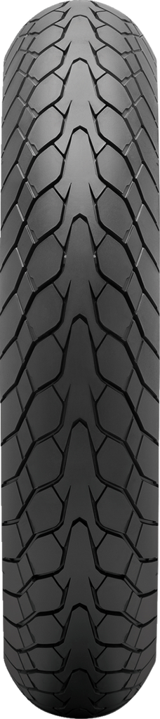 The DUNLOP Mutant Front Tire (Part Number 45255209) is engineered for exceptional performance and durability in various riding conditions. Featuring Jointless Band Technology (JLB), this tire utilizes a continuously wound belt within the carcass, reducing dynamic growth and ensuring consistent handling and stability at high speeds. The Carcass Tension Control System (CTCS) allows for tailored tension across different areas of the tire, providing optimal stiffness and flexibility where needed for precise control. This design enhances ride quality and responsiveness, making it suitable for demanding riding environments. The high-silica compound, combined with deep tread channels, delivers outstanding wet traction and braking performance. The aggressive tread pattern not only improves grip but also ensures reliable traction across diverse terrain, whether wet or dry, offering confidence to riders in any condition. Built with advanced materials and innovative construction techniques, this tire is designed to meet the needs of modern motorcyclists seeking reliability, safety, and superior handling in a front tire.