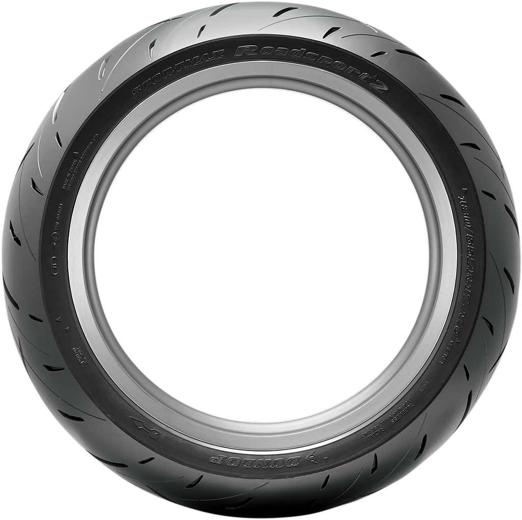 The Dunlop Roadsport 2 rear motorcycle tire offers a highly modern compound formulated with fine carbon black for enhanced versatility across various riding styles and conditions. Its innovative HCT tread design ensures consistent performance from brand-new to worn stages, providing riders with reliable grip and handling throughout the tire's lifespan. Designed with a sporty ride in mind, this tire delivers superior handling feel and excellent ground contact, making it ideal for winding road adventures and aggressive riding. The high silica content boosts wet traction, allowing for confident riding in diverse weather conditions. Suitable for most modern superbikes, the Dunlop Roadsport 2 is (W)-rated for speeds exceeding 168 mph, ensuring safety and stability at high velocities. Engineered to maximize performance and durability, this rear tire combines advanced materials and cutting-edge design to meet the demands of serious motorcyclists.