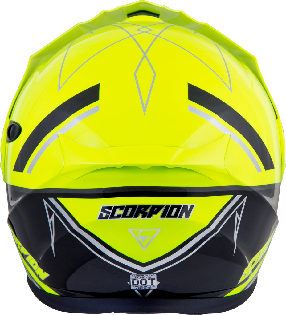 Introducing the EXO-AT950, a versatile modular adventure touring helmet. It has features and quality that you would expect to pay far more. The EXO-AT950 can be used as a full face adventure helmet with external peak visor attached, or the peak visor can be removed and you have an aerodynamic touring helmet. The no-fog Everclear® face shield can be removed and you can use the EXO-AT950 as a dirt helmet with goggles for off-road use. Our oversized eye port is extremely wide for greater peripheral vision and downward visibility, and the modular chin bar can be conveniently flipped up when you stop to get gas or ask for directions. The internal drop down sun visor and Kwikwick® II liner will keep you comfortable all day long even as lighting conditions change throughout the day. Three shell sizes made of advanced LG® polycarbonate and dual density eps, result in a helmet that is light weight, strong, and protective.