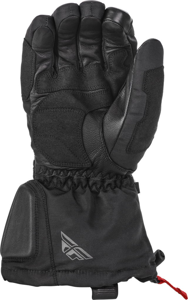The Fly Racing Aurora Gloves Black in size 3X are designed to provide superior protection and comfort during cold-weather riding conditions. Crafted with high-grade genuine leather palms and fingertips, these gloves ensure durability and a reliable grip for years of use. An additional leather strip between the thumb and index finger reinforces high-wear areas, extending the gloves' lifespan and maintaining their performance over time.