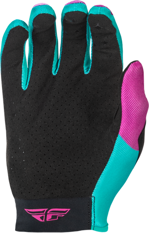The Fly Racing Girl's Lite Gloves in Pink and Turquoise are designed for young riders seeking a lightweight and comfortable fit. Crafted with a minimalist approach, these gloves offer a soft hand feel that ensures comfort during extended wear. The single-layer Clarino® palm is perforated to enhance airflow and reduce weight, providing a breathable and responsive grip for young cyclists. The touch screen-compatible design allows for easy operation of devices without removing the gloves, adding convenience to active riding sessions. Spandex mesh on the finger sidewalls and gussets further improve airflow and keep the gloves lightweight, making them suitable for various weather conditions. Reinforced double-layer material on the thumb enhances durability in high-wear areas, extending the lifespan of the gloves. Silicone finger grippers provide added control and grip, ensuring a secure hold on handlebars and equipment. These features combine to create a functional, comfortable, and stylish option for young riders who value performance and comfort.