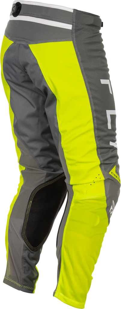 The Fly Racing Kinetic Mesh Center Pants in Grey, White, and Hi-Vis ensure optimal fit and performance for motorcycle riders. Featuring the innovative BOA® Fit System, these pants allow quick and precise micro-adjustments for a secure, personalized fit, enhancing comfort and control during rides. The stretch mesh material offers improved flexibility and breathability, while the comfortable mesh liner promotes airflow and moisture management to keep you cool on the trail or track. Designed with multi-directional stretch-rib panels, these pants provide excellent freedom of movement, accommodating dynamic riding positions and reducing fatigue.