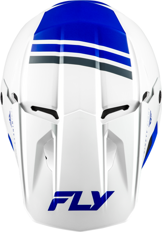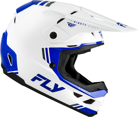 Experience enhanced protection and comfort with the FLY Racing Kinetic Verdict Helmet in White, Blue, and Grey, size XL. This helmet combines durability, lightweight construction, and advanced ventilation to meet the demands of aggressive off-road riding. Crafted from a durable polymer shell, it provides reliable impact resistance while keeping weight manageable for prolonged use. The dual-density EPS liner absorbs shocks effectively and is available in four sizes for a precise fit, ensuring optimal safety and comfort for every rider. Its integrated design features a custom-molded rubber trim with an added nose guard, enhancing protection against debris and impacts during intense off-road sessions. The helmet's comfort liner and cheek pads are removable and washable, helping maintain hygiene and airflow, and are designed to absorb sweat during vigorous rides.