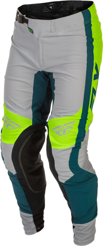 The Fly Racing Lite Pants in Grey, Lime, and Teal are designed for riders seeking optimal comfort and protection on the road or trail. Crafted with a lightweight minimalist design, these pants provide freedom of movement without sacrificing durability. Mesh panels located on the sides of the knees, hips, and lower legs enhance airflow, helping to keep you cool during intense rides or hot weather conditions. The low-profile stretch leg cuffs, combined with a removable elastic band, ensure a secure fit that adapts to your body shape for all-day comfort.