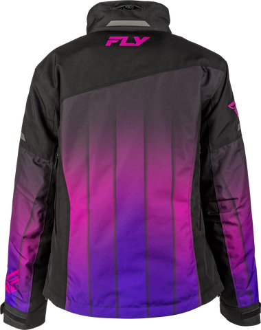 The Fly Racing Women's SNX Pro Jacket in Purple and Black, size XL, offers advanced weatherproof technology designed for winter sports enthusiasts. Featuring Hydraguard™ weatherproof technology, this jacket is windproof, waterproof, and breathable, ensuring you stay dry and comfortable in harsh conditions. The seam-sealed construction provides an extra layer of moisture protection, while 2Cool Air mesh vents help regulate temperature and keep snow out during active pursuits. Crafted from a durable 450D abrasion-resistant polyester shell, this jacket is built to withstand the rigors of winter adventures. It includes 140 grams of insulation for warmth and a removable thermal liner for versatile layering options, adapting to changing weather conditions throughout the day.