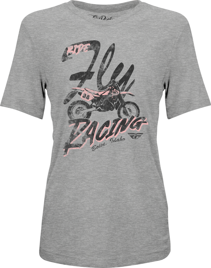 Experience the perfect blend of comfort and style with the Fly Racing Women's Vintage Tee in Grey. Crafted from a premium fabric blend, this tee features 60% combed ring-spun cotton and 40% polyester, providing a soft, durable feel that maintains its shape wash after wash. The lightweight construction, at approximately 4.3 ounces, ensures all-day comfort whether you're on the trail or relaxing off-duty. Its classic crew neck design is contoured to fit the natural curves of your body, offering a flattering silhouette and a premium fit that enhances your overall look. Designed with attention to detail, this tee balances casual style with performance-grade materials, making it a versatile addition to any wardrobe. Ideal for riders and outdoor enthusiasts who value both function and fashion, the Fly Racing Vintage Tee delivers a reliable, comfortable fit while showcasing a sleek, understated aesthetic. Whether layered or worn alone, this tee adds a touch of sporty sophistication to your everyday ensemble.