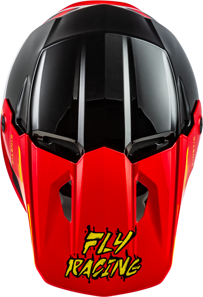 The FLY Racing Youth Kinetic Surge Helmet in Black, Red, and Yellow is engineered to deliver maximum protection and comfort for young off-road enthusiasts. This helmet features a durable yet lightweight polymer shell that offers excellent impact resistance while keeping overall weight manageable. The design incorporates a dual-density EPS liner that absorbs impacts efficiently, ensuring safety during intense rides.