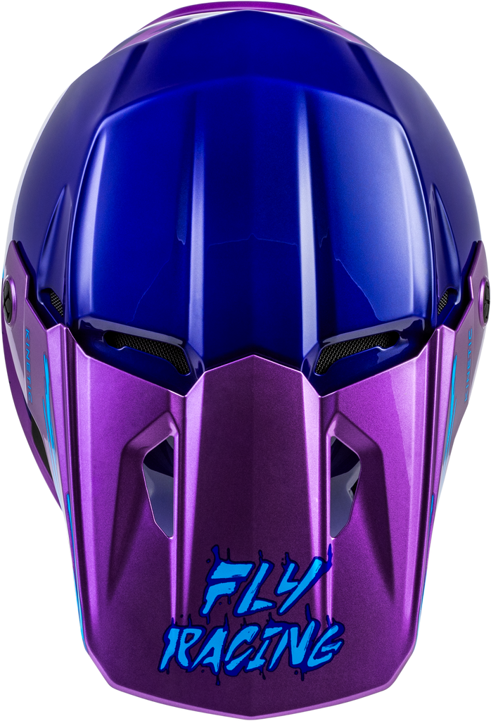 The Fly Racing Youth Kinetic Surge Helmet in Pink, Purple, and Teal offers young riders premium protection combined with comfort and style. Designed with durability and lightweight construction, this helmet features a high-quality polymer shell that withstands impacts while remaining comfortable for extended wear. It incorporates a dual-density EPS liner that provides optimal shock absorption, ensuring safety during off-road adventures. The helmet's custom-molded rubber trim complements an integrated nose guard, enhancing durability and rider protection.