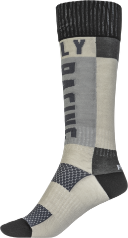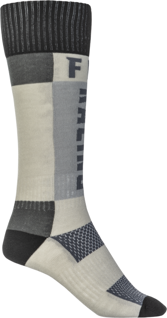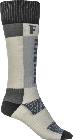Designed for young motocross enthusiasts, the Fly Racing Youth MX Socks in Thick Grey and Black provide exceptional comfort and durability for demanding rides. Crafted with a durable weave construction, these socks are built to withstand the rigors of off-road riding while maintaining their shape and performance. The woven graphics add a stylish touch, making these socks not only functional but also visually appealing. Featuring a boot length design, they offer full coverage and protection for the lower leg, ideal for motocross activities. The padded heel and toe areas enhance comfort during extended wear, reducing fatigue and preventing blisters. Additionally, the socks incorporate arch and ankle support, providing stability and reducing strain during aggressive riding maneuvers. Whether you're hitting the track or enjoying trail riding, these socks are designed to keep your feet comfortable, supported, and protected throughout your ride.