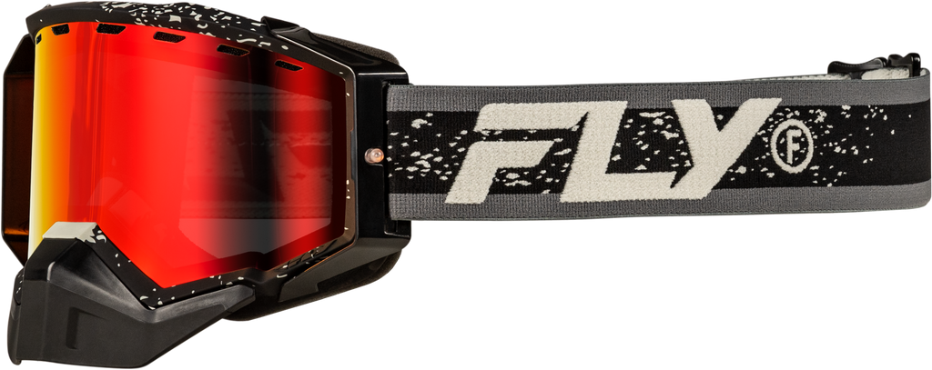 Experience superior visibility and protection with the Fly Racing Zone Snow Goggle in stylish black and grey, featuring a red mirror and amber lens. Designed for snow sports enthusiasts, this goggle combines advanced construction and innovative features to enhance your performance on the slopes. The dual-pane polycarbonate snow lens is coated with anti-scratch and anti-fog layers, ensuring clear vision in varying weather conditions. The lightweight yet durable polyurethane frame provides comfort and resilience, making it suitable for extended wear. Its engineered frame design offers a broad field of view, giving you increased peripheral vision to better navigate the terrain. The quick-change lens system allows for effortless swaps, adapting swiftly to changing light environments, while the multilayer face foam ensures optimal moisture management and a snug seal against the elements. Outriggers enable a customized fit, and removable nose guards add extra protection against cold and wind. The adjustable double buckle strap with non-slip silicone ensures a secure fit compatible with most helmets. Included accessories such as a microfiber goggle bag and a snow nose guard make storage and additional protection convenient. Whether you're racing down the mountain or enjoying a leisurely ski day, the Fly Racing Zone Snow Goggle provides the clarity, comfort, and durability needed for an optimal snow sport experience.