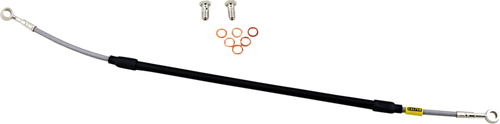 64 braided strands of steel around the line, making the line have zero expansion at any time - better than any other braided line, Requires less pressure at the lever, allowing the rider to use less force while stopping the bike faster and with better feel, Fittings come from the factory pre-positioned but can swivel 180° if necessary to make the installation process easier, Include a clear outer coating which protects the bike from scratches and the lines from humidity, Complete with all necessary banjo bolts and washers, Ready to install