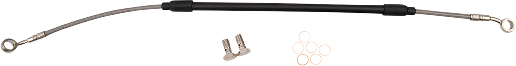 64 braided strands of steel around the line, making the line have zero expansion at any time - better than any other braided line, Requires less pressure at the lever, allowing the rider to use less force while stopping the bike faster and with better feel, Fittings come from the factory pre-positioned but can swivel 180° if necessary to make the installation process easier, Include a clear outer coating which protects the bike from scratches and the lines from humidity, Complete with all necessary banjo bolts and washers, Ready to install