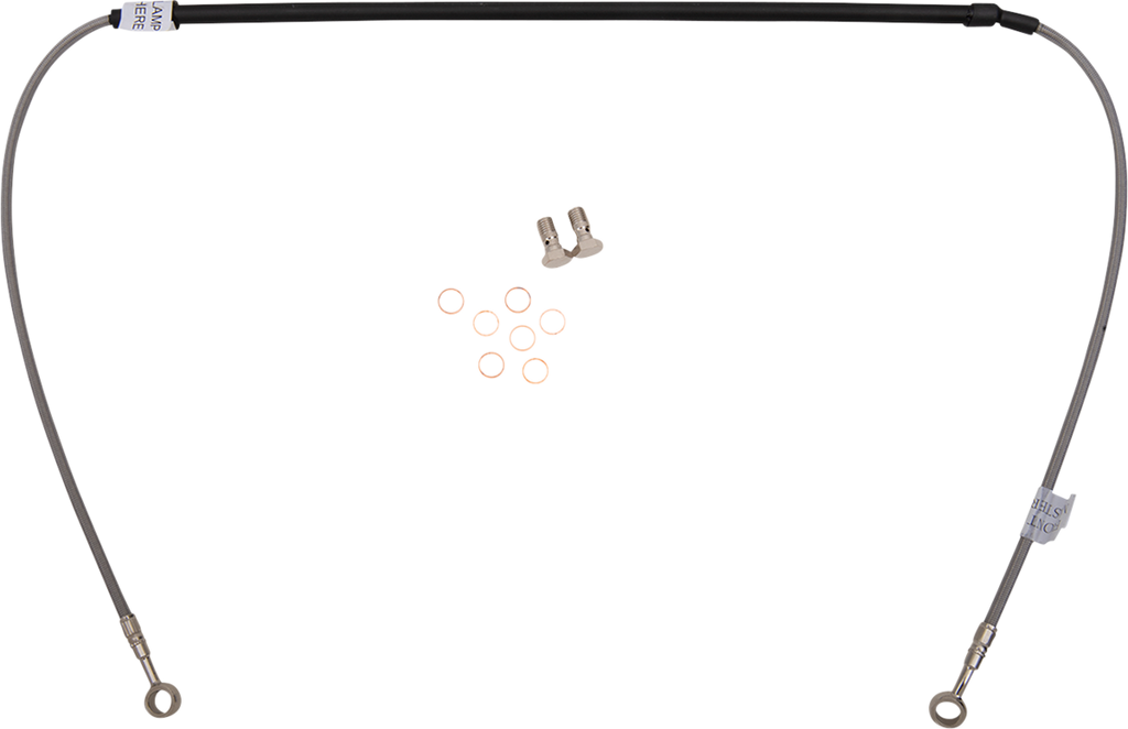 64 braided strands of steel around the line, making the line have zero expansion at any time - better than any other braided line, Requires less pressure at the lever, allowing the rider to use less force while stopping the bike faster and with better feel, Fittings come from the factory pre-positioned but can swivel 180° if necessary to make the installation process easier, Include a clear outer coating which protects the bike from scratches and the lines from humidity, Complete with all necessary banjo bolts and washers, Ready to install