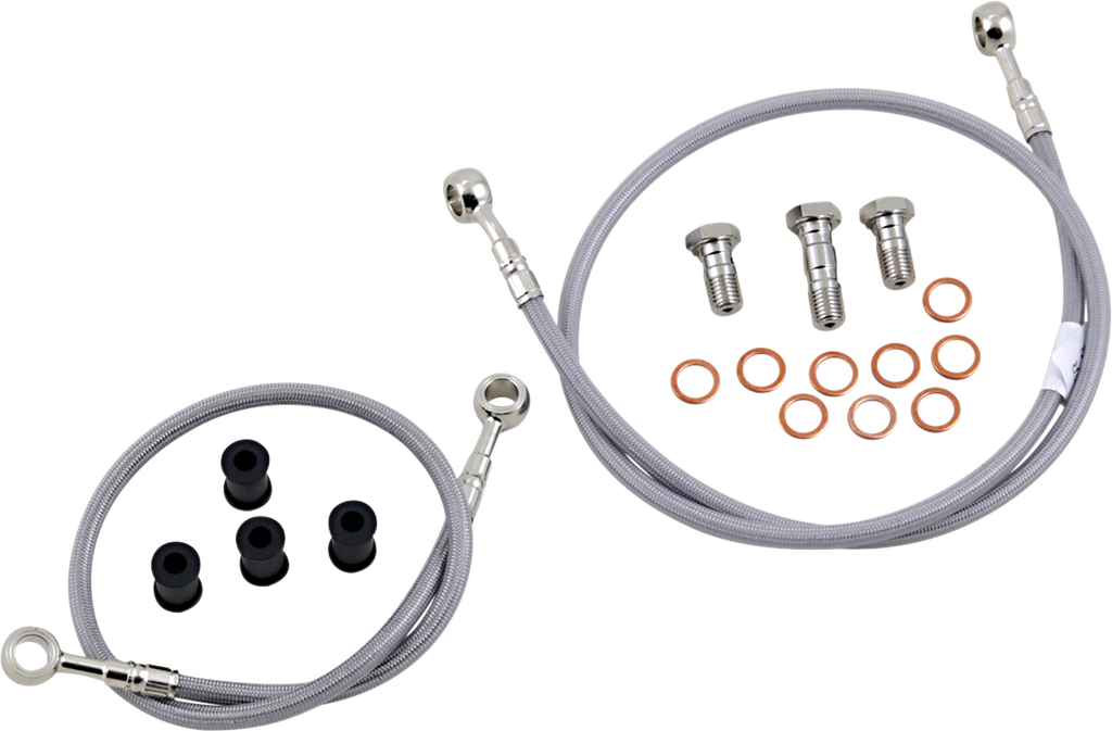 Requires less pressure at the lever, allowing the rider to use less force while stopping the bike faster and with better feel, Fittings come from the factory pre-positioned but can swivel 180° if necessary to make the installation process easier, Include a clear outer coating which protects the bike from scratches and the lines from humidity, Complete with all necessary banjo bolts and washers and ready to install