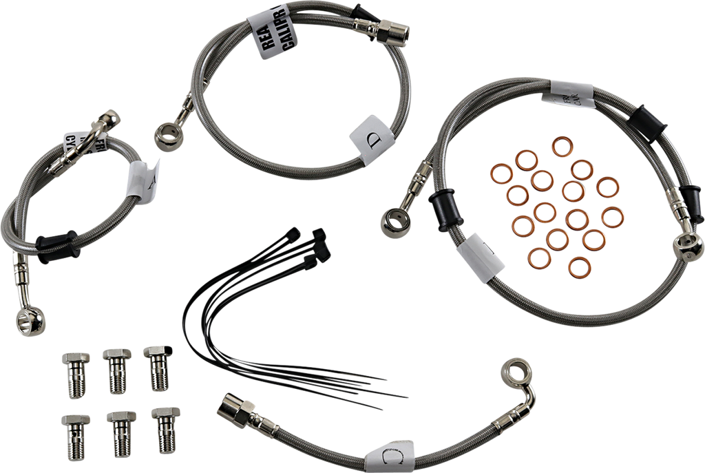 Requires less pressure at the lever, allowing the rider to use less force while stopping the bike faster and with better feel, Fittings come from the factory pre-positioned but can swivel 180° if necessary to make the installation process easier, Include a clear outer coating which protects the bike from scratches and the lines from humidity, Complete with all necessary banjo bolts and washers and ready to install