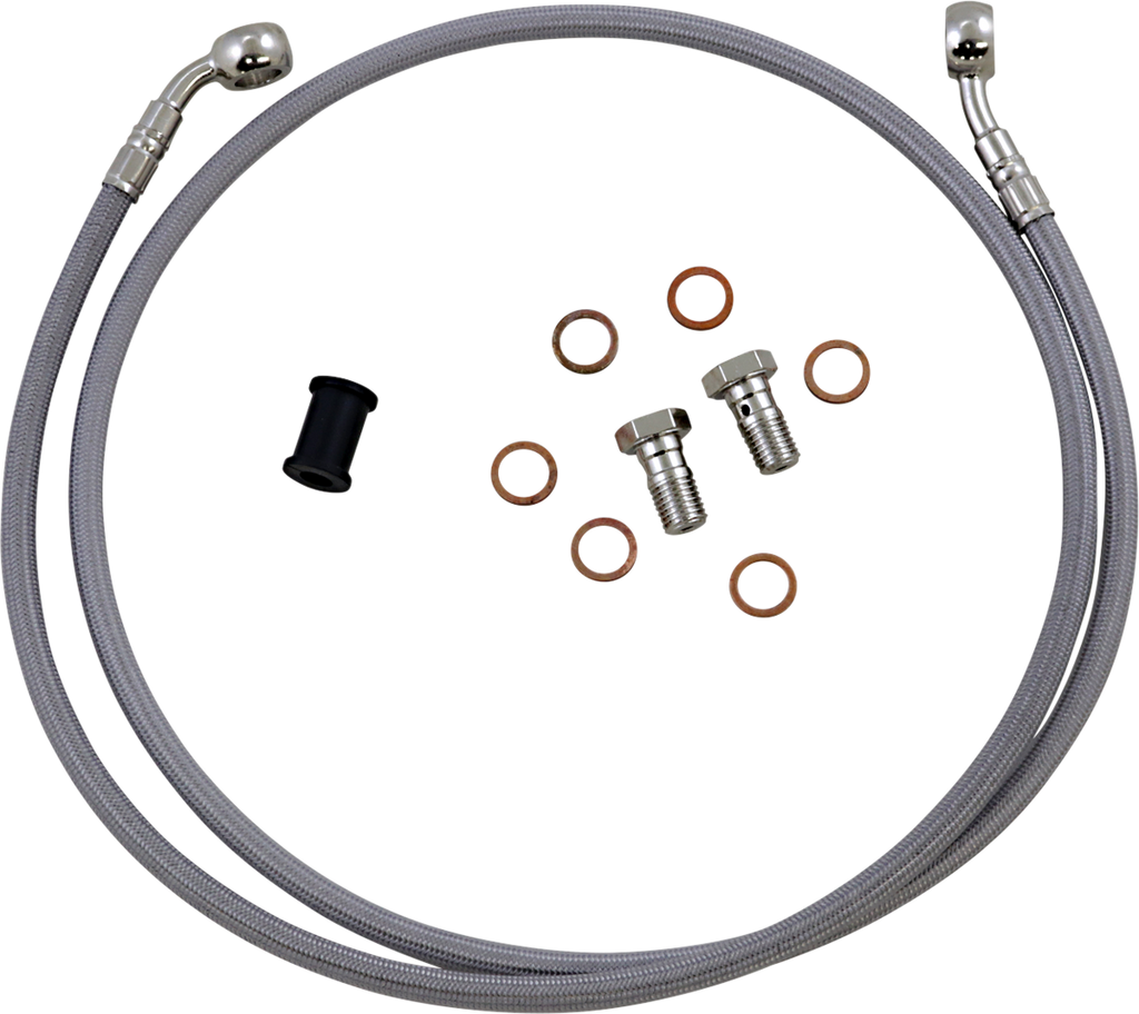 Stainless Steel lines are typically the first upgrade you should make, Stock rubber lines will break down and expand, causing a spongy feel or worse. Steel lines eliminate expansion which results in consistent feel and performance, Made with only DuPont virgin grade PTFE (Polytetrafluoroethylene) inner core, 64 strand braid, Includes all mounting components, extra washers, and line end labeling, and bike specific installations, R&D and manufacturing done in the US