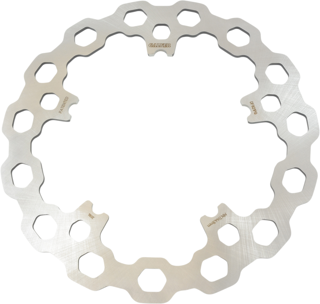 Named after the crystal steel molecules, the Cubiq brake rotor combines state-of-the-art technology with modern design, Rotor shape promotes uniform brake pad wear the contact surface between the pad and disc every revolution generates regular wear, Less unsprung weight (up to 40% lighter than standard round rotors) reduces gyroscopic effect and improves the manueverability of the motorcycle, Increased perimeter surface design generates more cooling surface around the rotor for better temperature dissipation